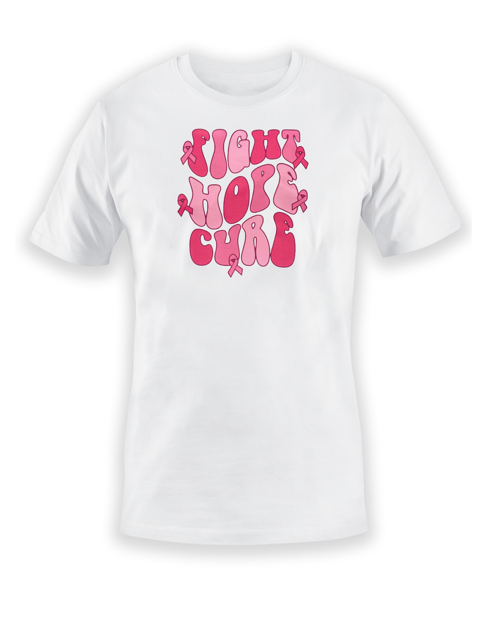 Show your strength and support with our Fight, Hope, Cure Breast Cancer Awareness tee. Designed to inspire courage, spread hope, and support the journey toward a cure, this shirt is perfect for survivors, fighters, and supporters alike. Ideal for walks, fundraisers, and everyday wear during Breast Cancer Awareness Month and beyond.