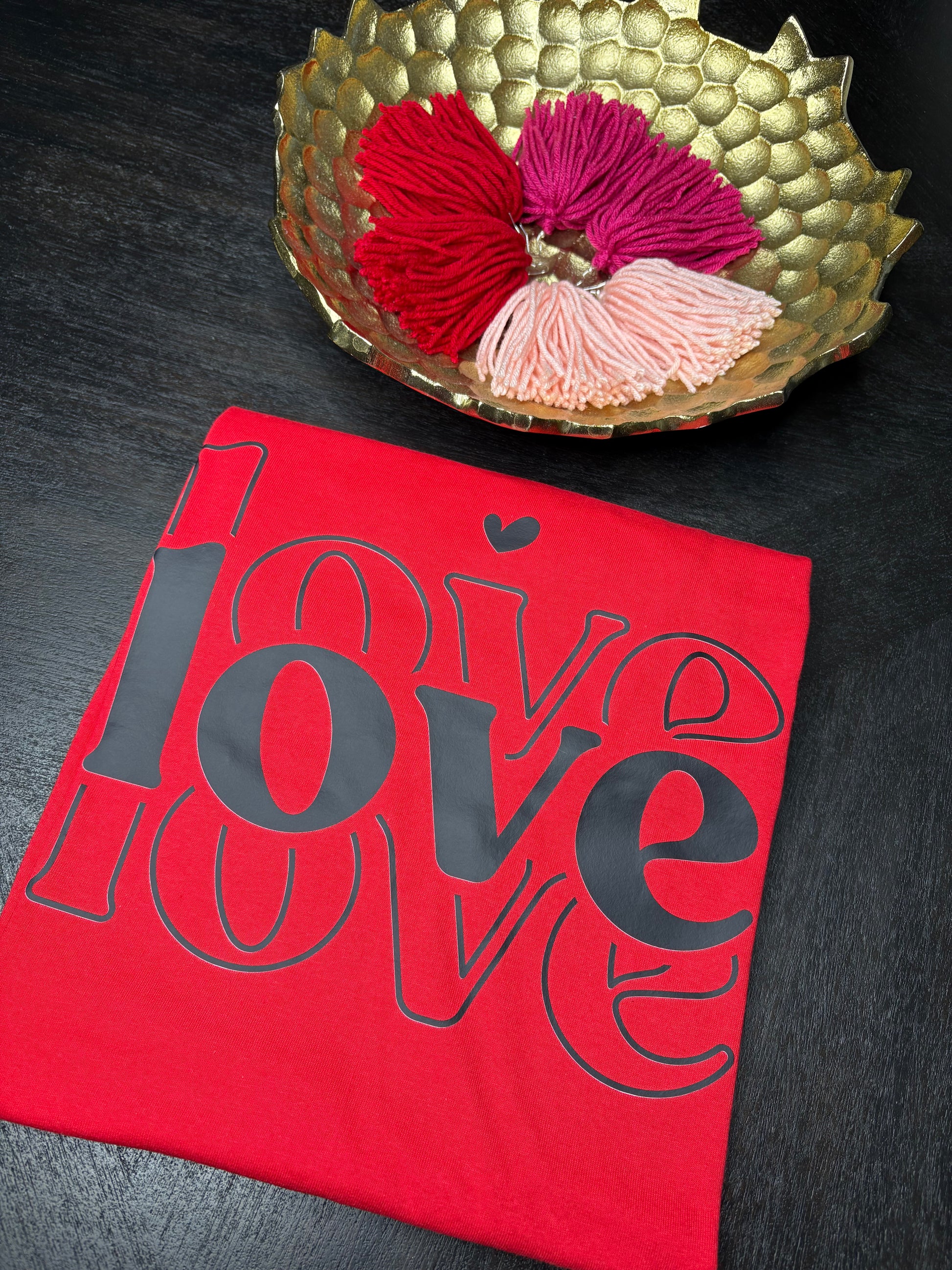 This red shirt featuring the word “LOVE” is a classic must-have for Valentine’s Day and beyond. Designed to make a statement with minimal effort, this tee is perfect for spreading love in a stylish, everyday way.