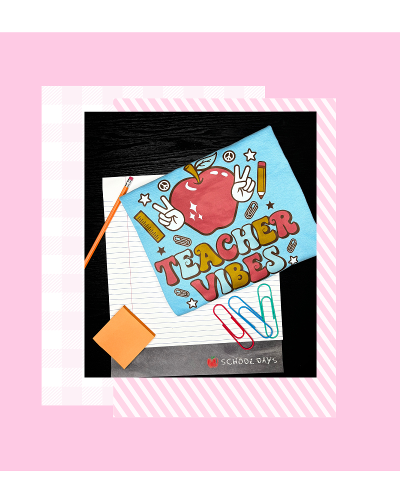 Bring positivity to the classroom with our “Teacher Vibes” tee! Soft, stylish, and comfy, it’s the perfect shirt for educators who want to show off their passion with a fun and casual look. Great for everyday wear or as a gift for your favorite teacher.
